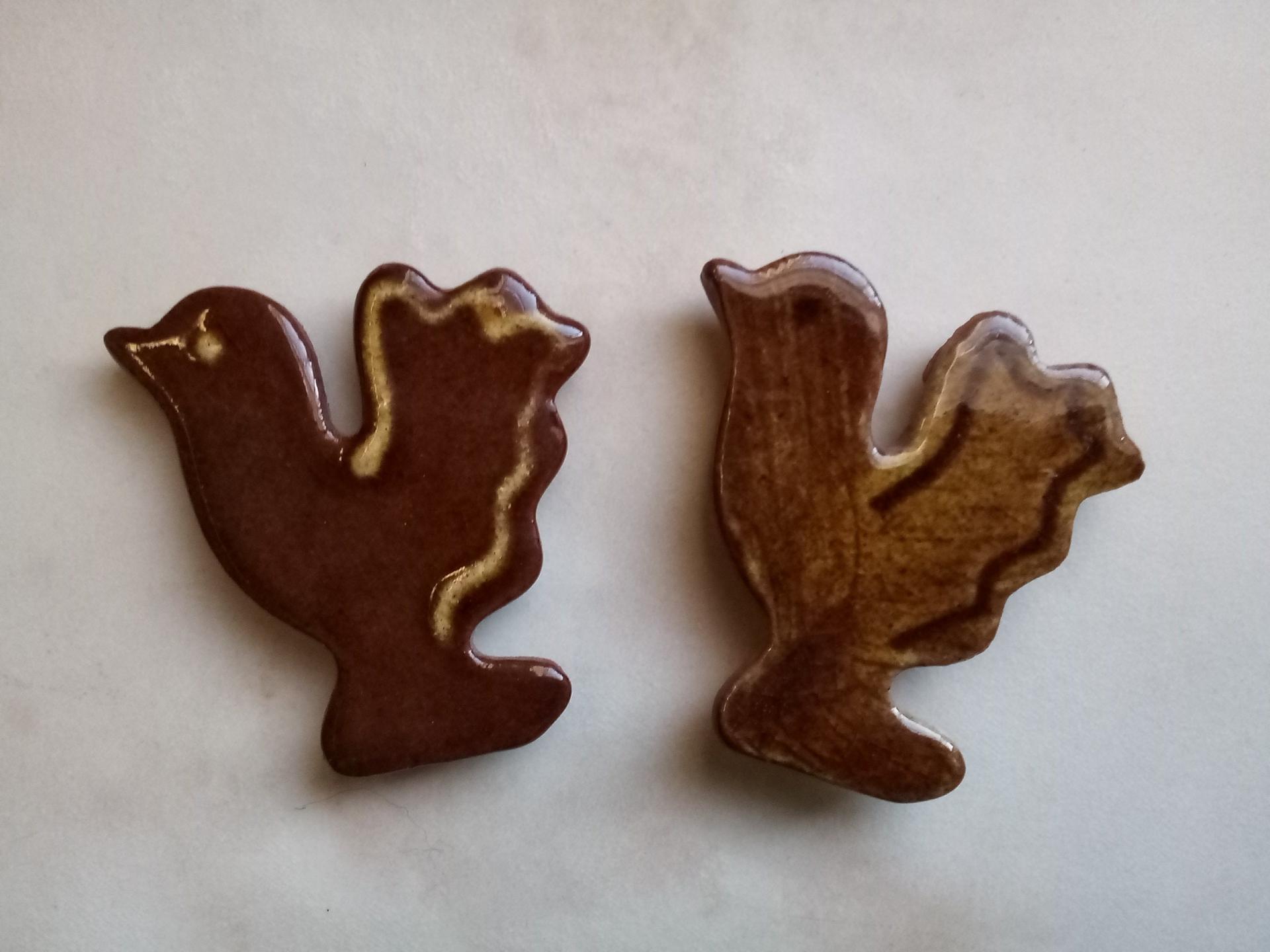 These 2 primitive mini turkey magnets are made by Garine of Kulina Folk Art. They are 1.50" and finished with a lead free glaze.